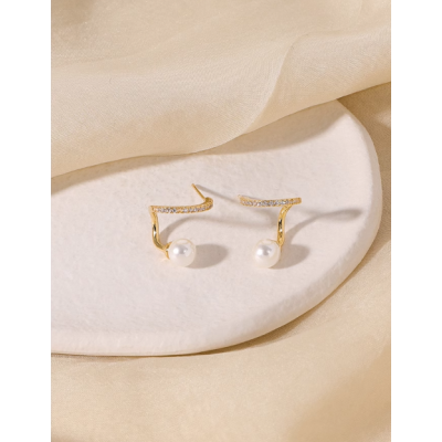 Zircon pearl earrings for female commuter French mosquito coil ear clip without ear holes