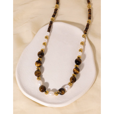 Pearl necklace for women Vintage natural tiger Eye stone beaded collarbone chain