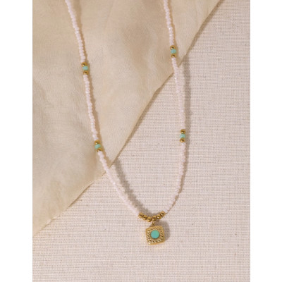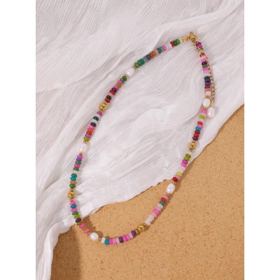 Colored natural stone beaded pearl necklace