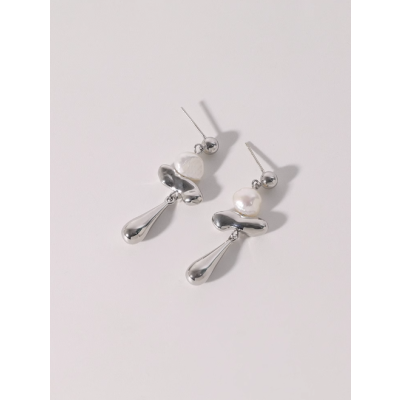 Silver freshwater pearl earrings Temperament drop wind chime ear clip