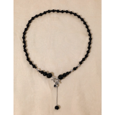 Black agate beaded necklace Women's size beads OT button sweater chain