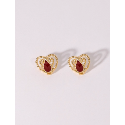 Red enamel love ear stud French premium Diamond sweet heart ear clip