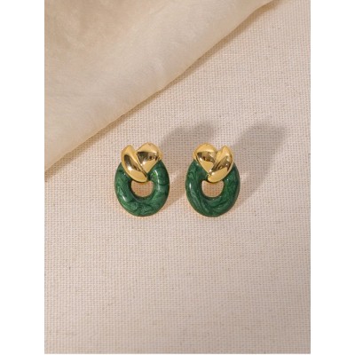 Enameled green earrings for women French Harbor Chic emerald stud earrings