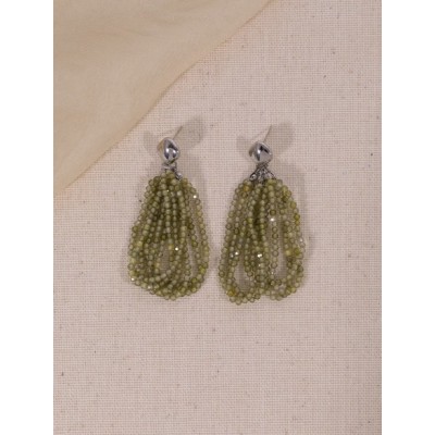 Sparkling colorful beaded tassel earrings Feminine long earrings ear clips