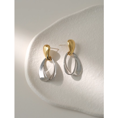 Gold and silver matching earrings feminine oval earrings
