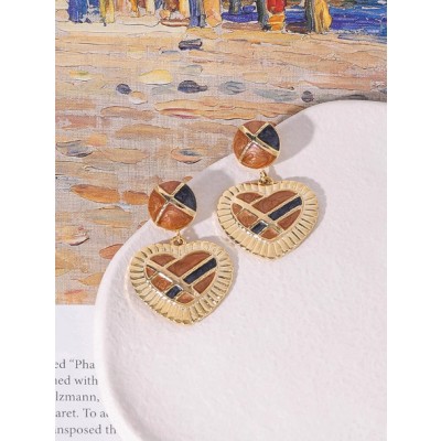 Love earrings retro niche temperament contrast color heart earrings