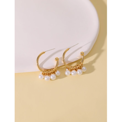 Simple C ring grape string pearl earrings