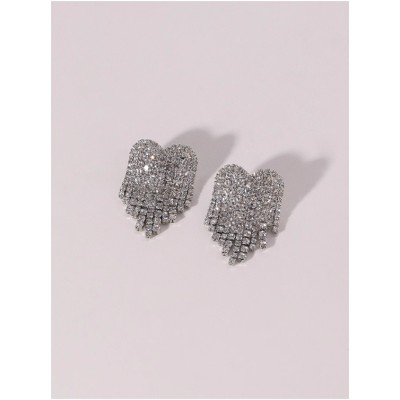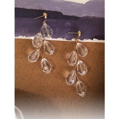 French vintage senior sense crystal earrings Oval water drop bead ear clip