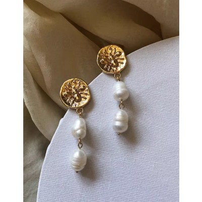 Milky white harbor Wind Circle earrings for women Vintage natural pearls