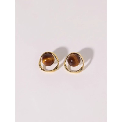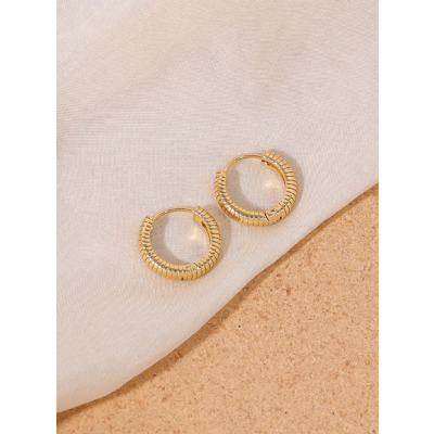 Simple gold pigmented hoop earrings Metallic striped earrings for women