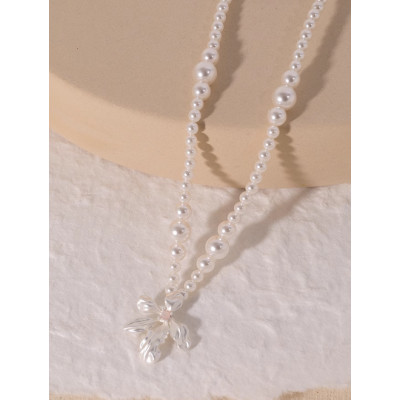 Floral gradient pearl necklace for women exquisite vintage clavicle chain