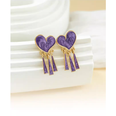 Purple beaded tassel earrings women's high sense long earrings ear clips