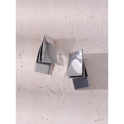 Vintage gold and silver metal color contrast three-dimensional foil flower earring clip