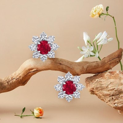 18k gold natural pigeon blood ruby sunflower stud earrings