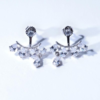 Front and back stud earrings niche design zircon earrings temperament simple everything stylish sterling silver crystal earrings