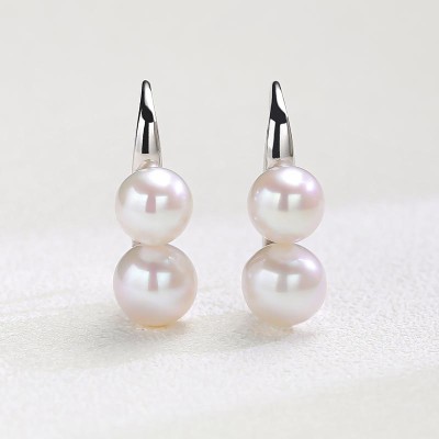 S925 Silver plated 18K white gold 6-8mm fashion simple size double bead earrings