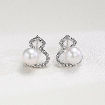 S925 Silver plated 18K white gold 6-7mm auspicious gourd pearl earrings meaning auspicious