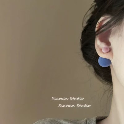 Minimally contrasting velvet ball jewelry for autumn and winter, double-sided large ball earrings, high-end earrings for women