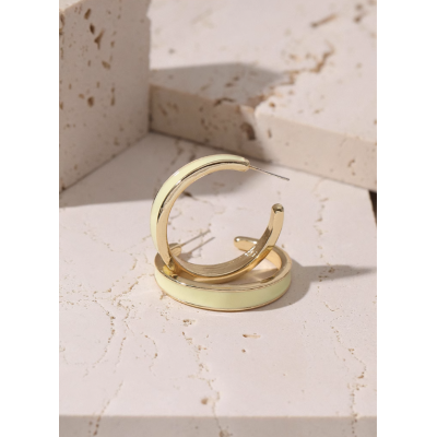 Big circle earrings for women Cream Yellow vintage hoops ear clips