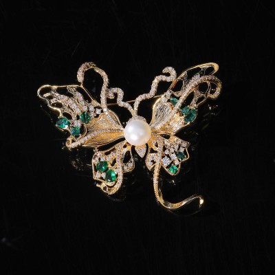 Butterfly Natural Pearl Brooch Suit dress pin Luxury Buccellati craft