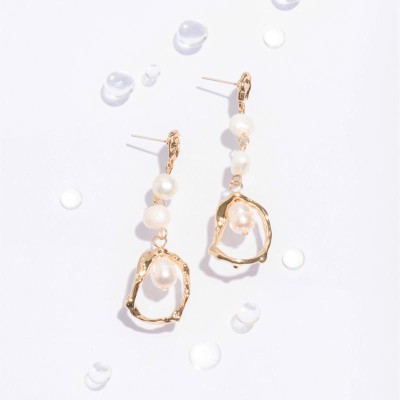 Fashion earrings Gold geometric long freshwater pearl stud earrings