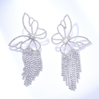 Butterfly stud earrings for women fringe Exaggerated sparkly party earrings
