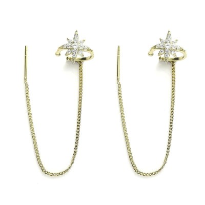 Hexagon star trend earrings electroplated gold chain tassel earrings Retro fashion personality star earrings