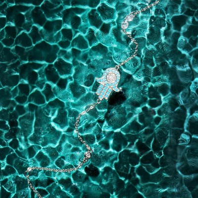 Stylish gold-plated inset blue zircon exquisite palm bracelet for women with simple personality vintage hand jewelry gift